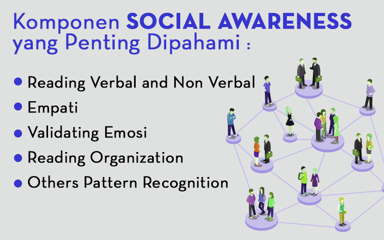 Social Awareness adalah kemampuan seseorang untuk bisa membaca, menyadari serta memahami apa yang dialami oleh orang disekitarnya serta lingkungannya. Dan pemahaman ini menjadi dasar baginya untuk bertindak secara tepat dalam situasi yang dialaminya.